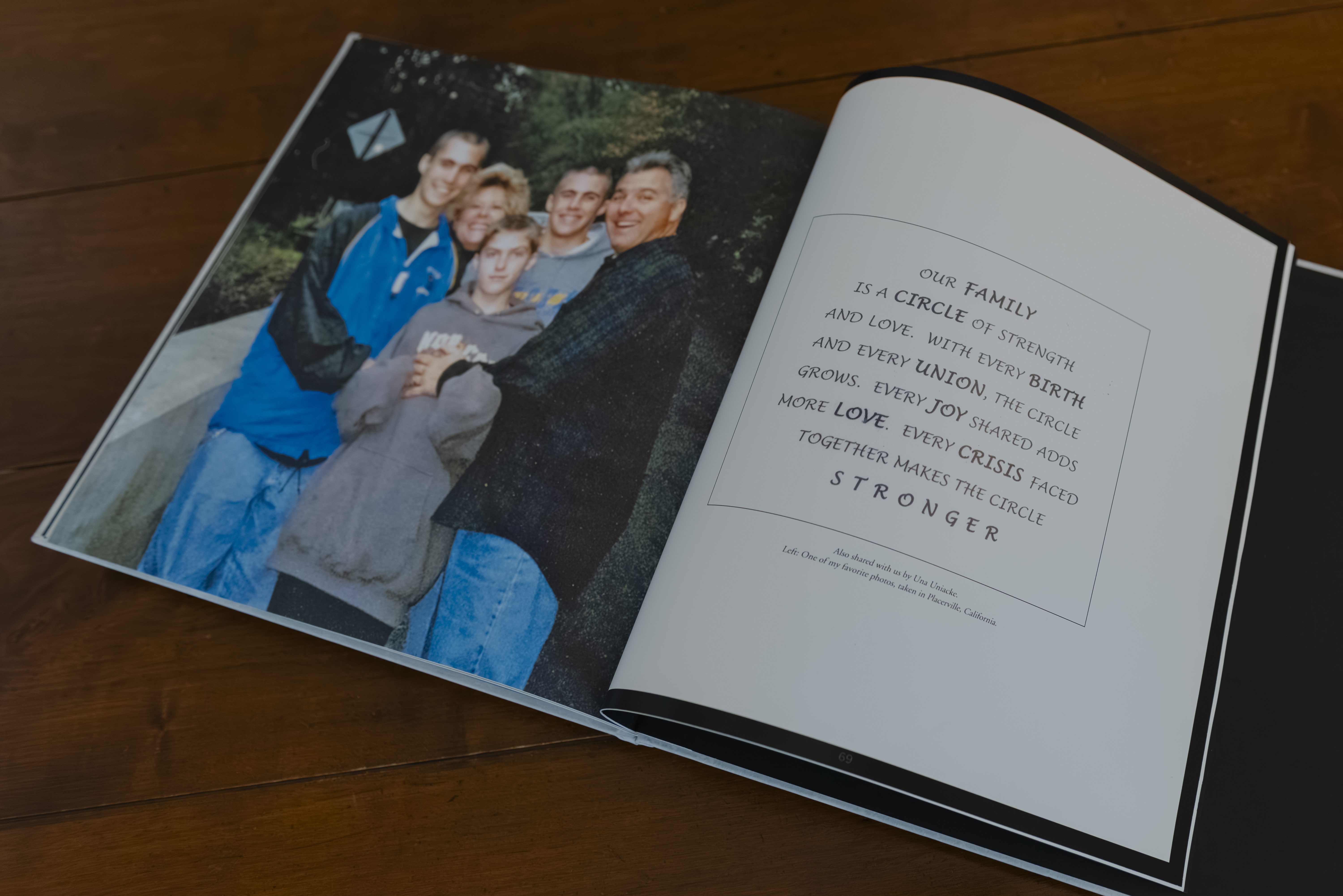Want to include memories from multiple people? A Remembrance Book is a beautiful way to collect the individual’s brief biography and complement it with personal memories from friends and family. It is a touching tribute, and one of my favorite masterpieces.